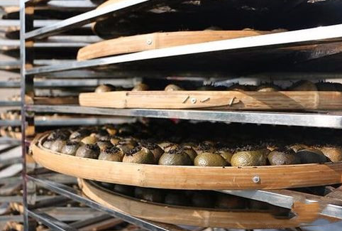 5、殺青:殺青一方面為了殺菌消毒,一方面是為了去掉柑皮的青味,并將果皮里的一些苦澀物質轉化成甘醇的香氣。